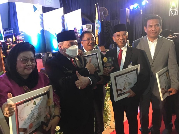 Ada sejumlah alumni menerima penghargaan. Selain Isran, dari Fakultas Ekonomi diwakili Dr Meiliana, Dirut Bankaltimtara M Yamin dan saya selaku ketua IKA FEB. Saya lihat ada dua anggota DPRD Kaltim, Dr Rusman Ya’cub dan Dr Syarkowi V Zahry juga. Malah Syarkowi sempat menyerahkan tanda anggota kehormatan IKA Fahutan Unmul kepada Menteri Siti Nurbaya.
