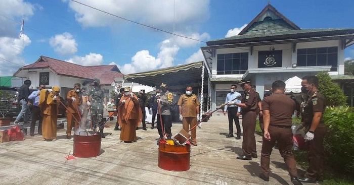 PASER – Kejaksaan Negeri (Kejari) Paser melakukan pemusnahan barang bukti (BB) hasil sitaan periode Oktober 2021 hingga Juni 2022, di halaman Kantor Kejari Paser, Selasa (14/06/2022).