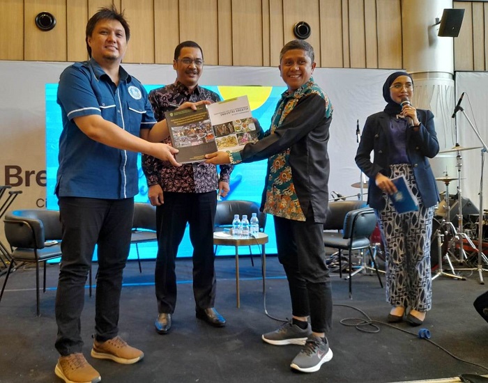 Fitriansyah – Plt Kepala Balitbangda Kaltim bersama HM. Faisal saat menyerahkan buku Industri Kreatif Kaltim kepada Aji Mirza Hakim Ketua DPW Gekrafs Kaltim